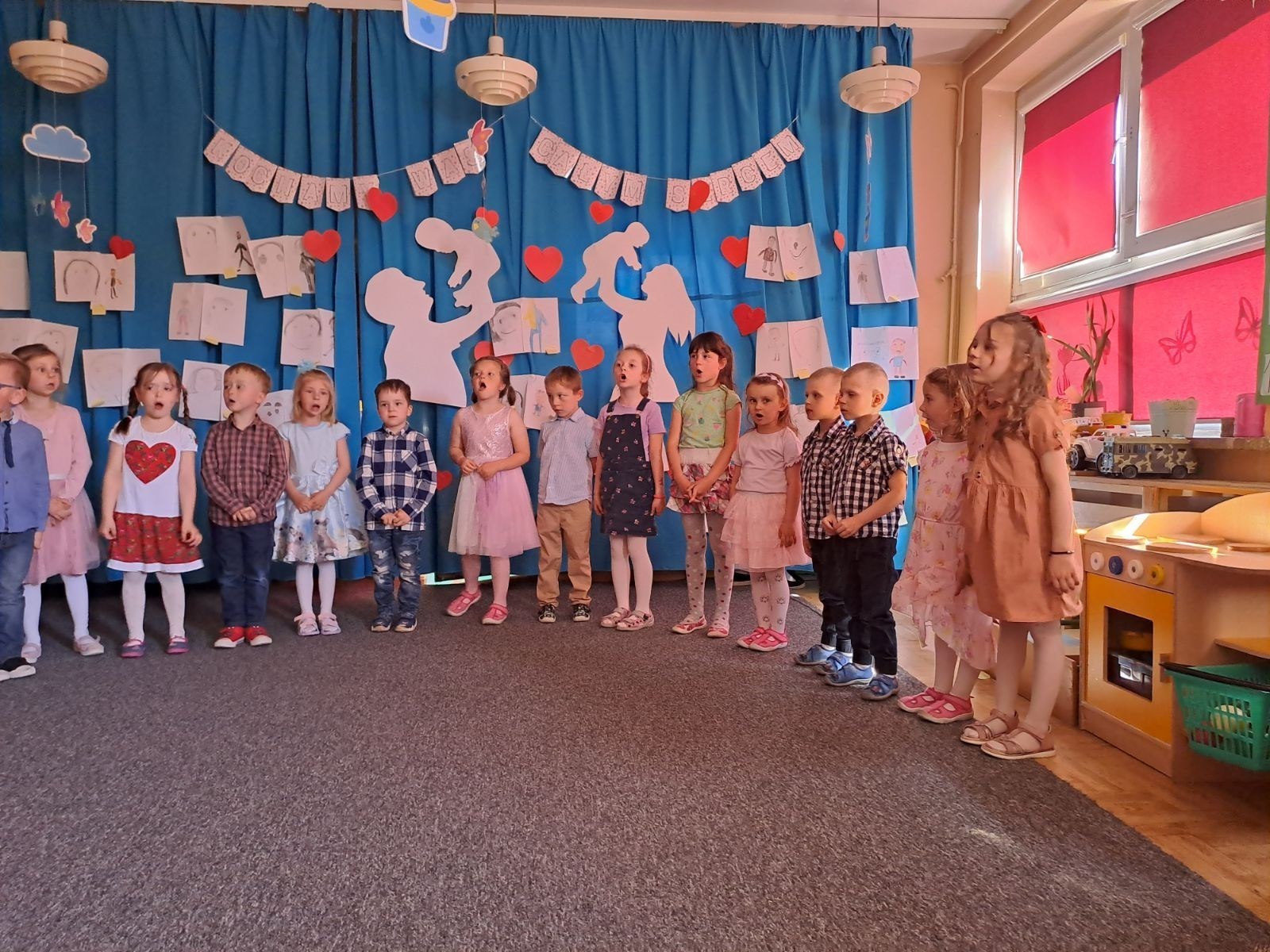 W dniu 30.05.2023r dzieci z grupy „Rybek” zaprosiły rodziców na występ i do wspólnej zabawy, z okazji „Dnia Matki i Ojca”