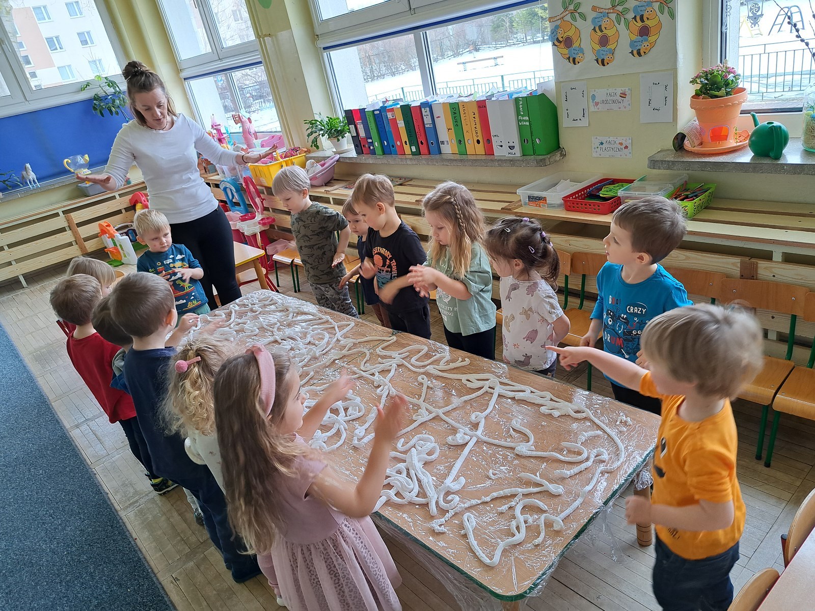 Za oknem śnieg i w naszej sali również zrobiło się biało. Maluszki uwielbiają takie zajęcia.