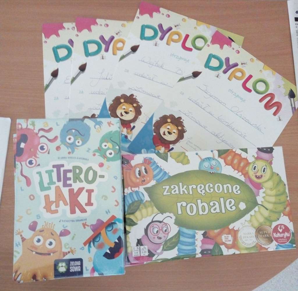 Zakończył się konkurs przedszkolny „Zimowe aktywności”. Prace można oglądać na naszej tablicy obok szatni. Uczestnicy otrzymali dyplomy i nagrody.