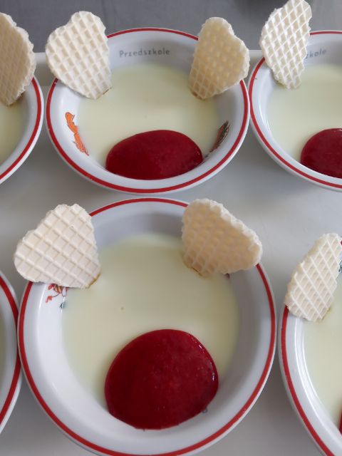 Dziś całe przedszkole obchodziło Walentynki, a Panie Kucharki przygotowały nam nawet Walentynkowe desery.