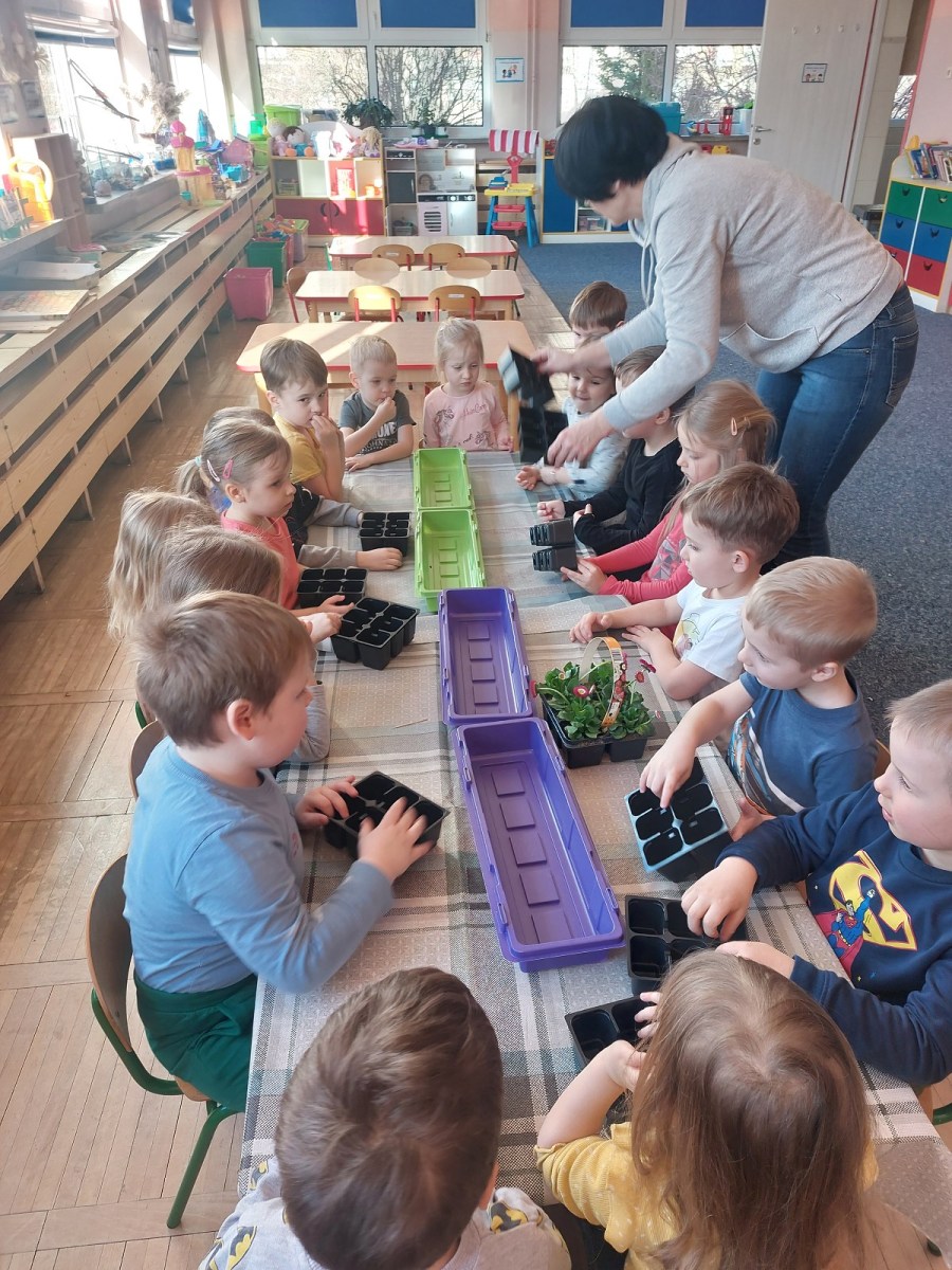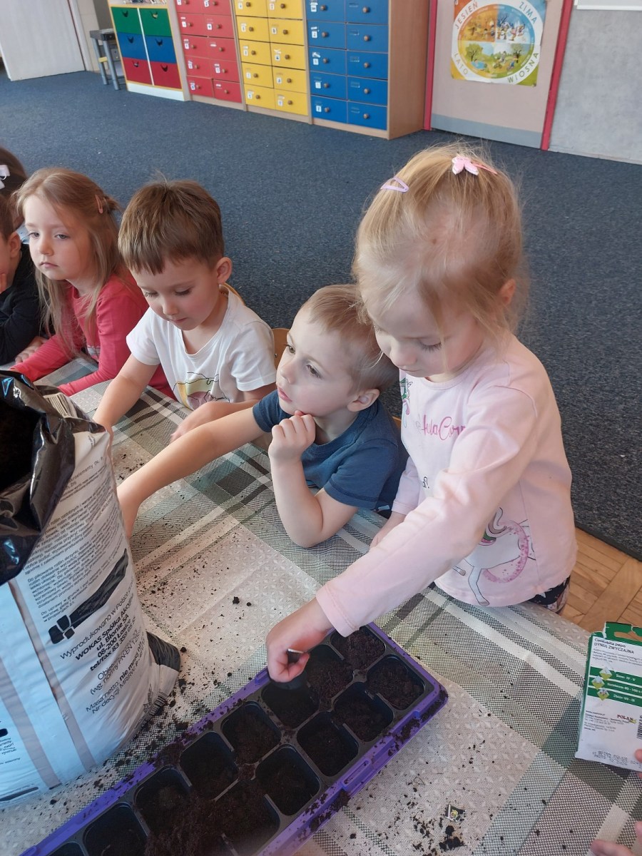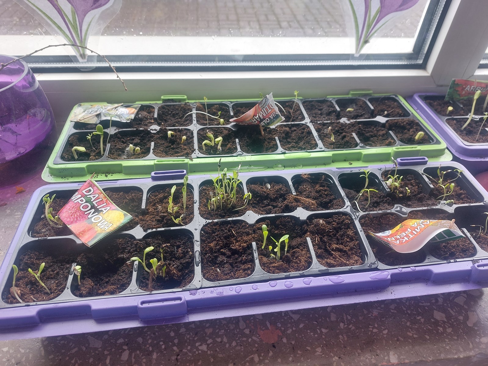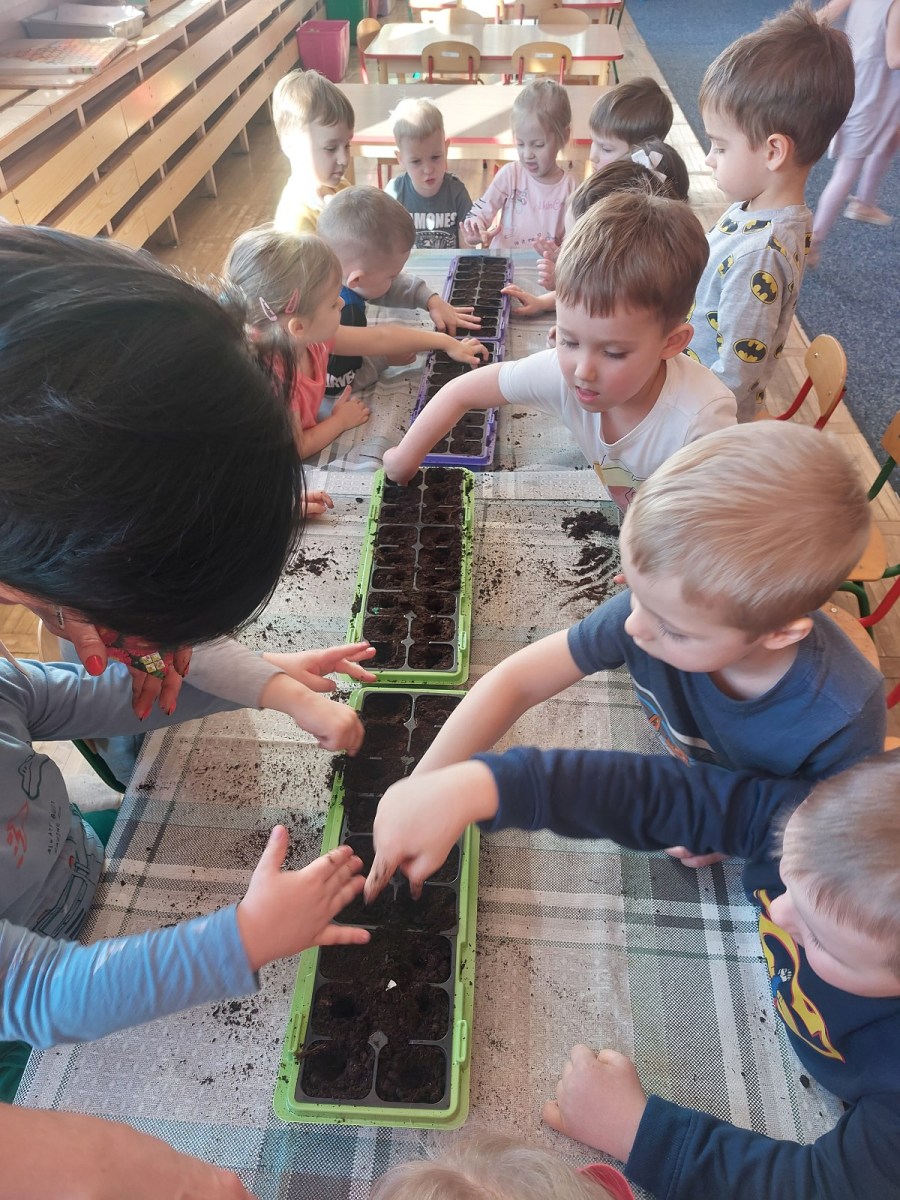Sadzenie kwiatów w skrzynkach rozsadnych – wizyta mamy Nataniela.