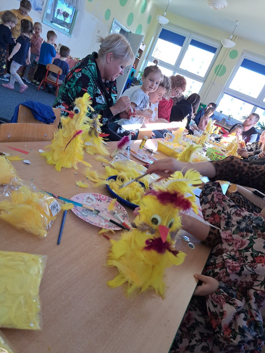 Wielkanocny kurczak 5 kwietnia 2023 3 kwietnia 2023r w Naszej grupie odbyło się wspólne spotkanie z rodzicami. Na zajęciach dzieci wraz z rodzicami wykonały wielkanocnego kurczaka. Dziękujemy rodzicom za tak liczne przybycie, za dobrą zabawę i za zaangażowanie w spotkanie.
