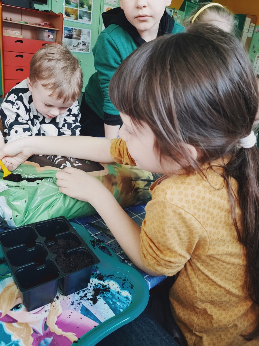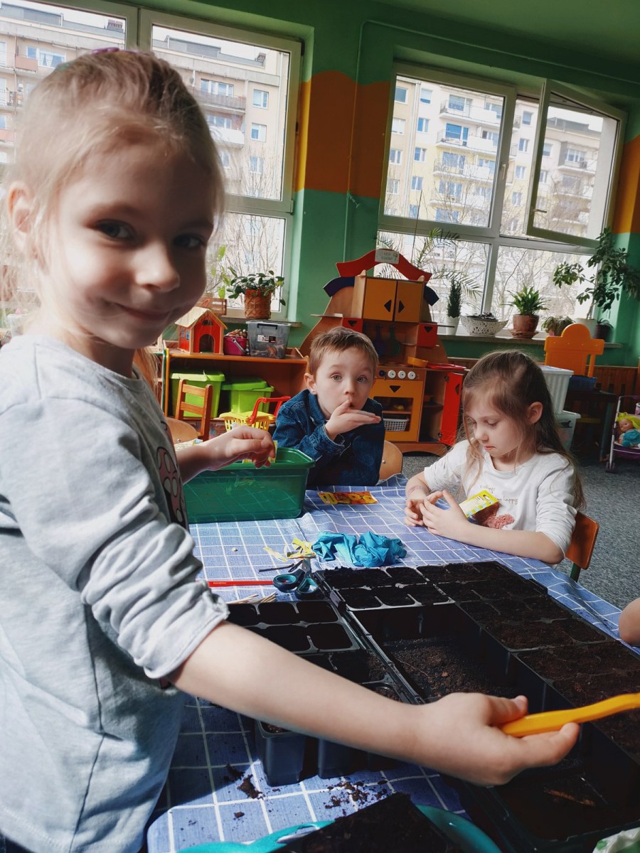 Kącik przyrodniczy u Rybek 13 kwietnia 2023 Dzieci z grupy Rybki wspólnie tworzyły ogródek w sali. Dzięki temu mogą obserwować wzrost roślin oraz kształtować umiejętność dbania o naturę.