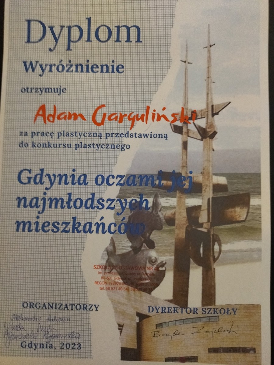 W dniu 30 maja dzieci z grupy V „Dzwoneczki” na uroczystej gali w Konsulacie Kultury odebrały nagrody za konkurs plastyczny „Gdynia oczami jej najmłodszych mieszkańców” zorganizowany przez Szkołę Podstawową nr 48.