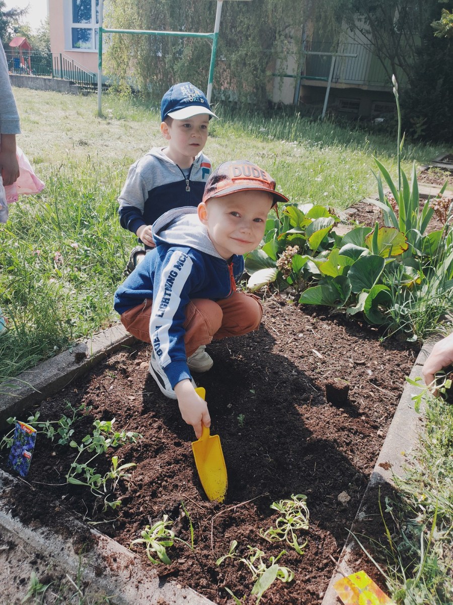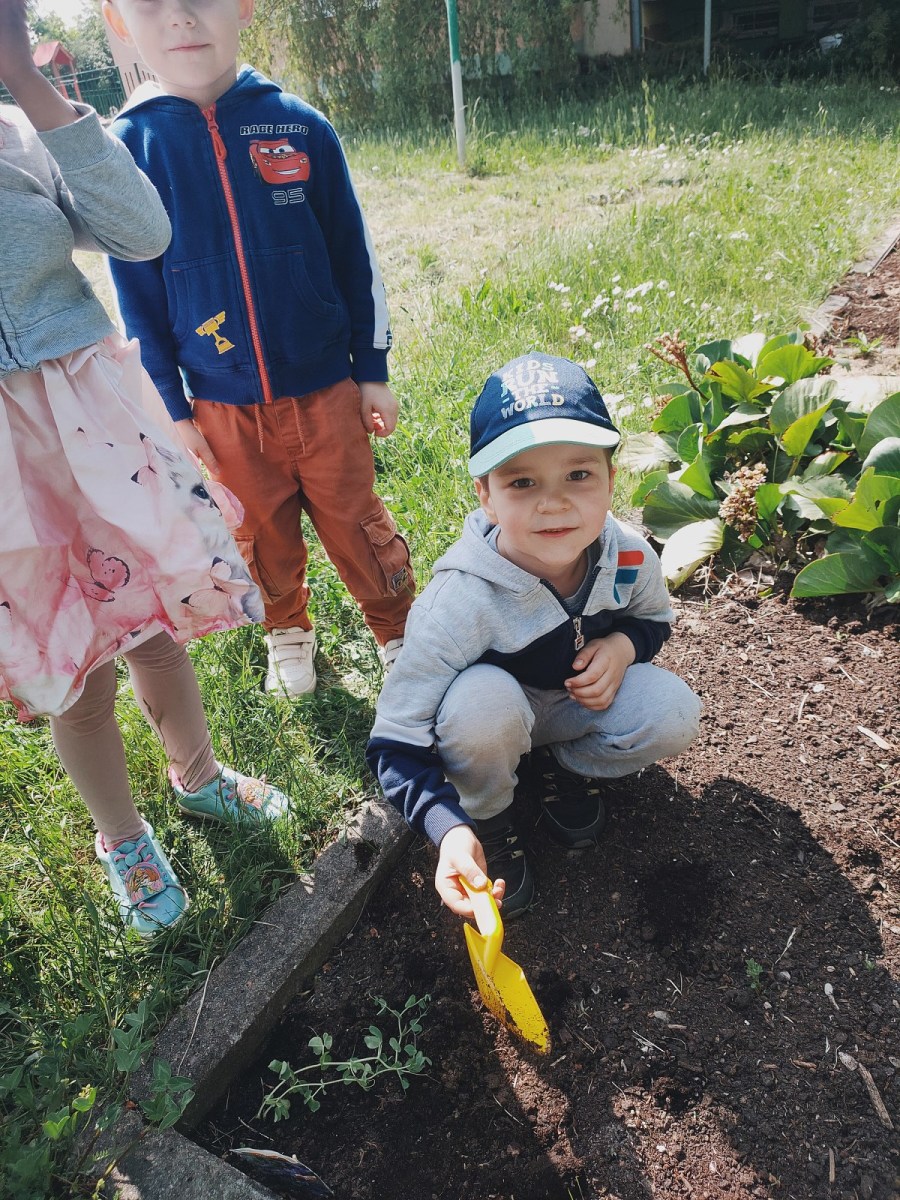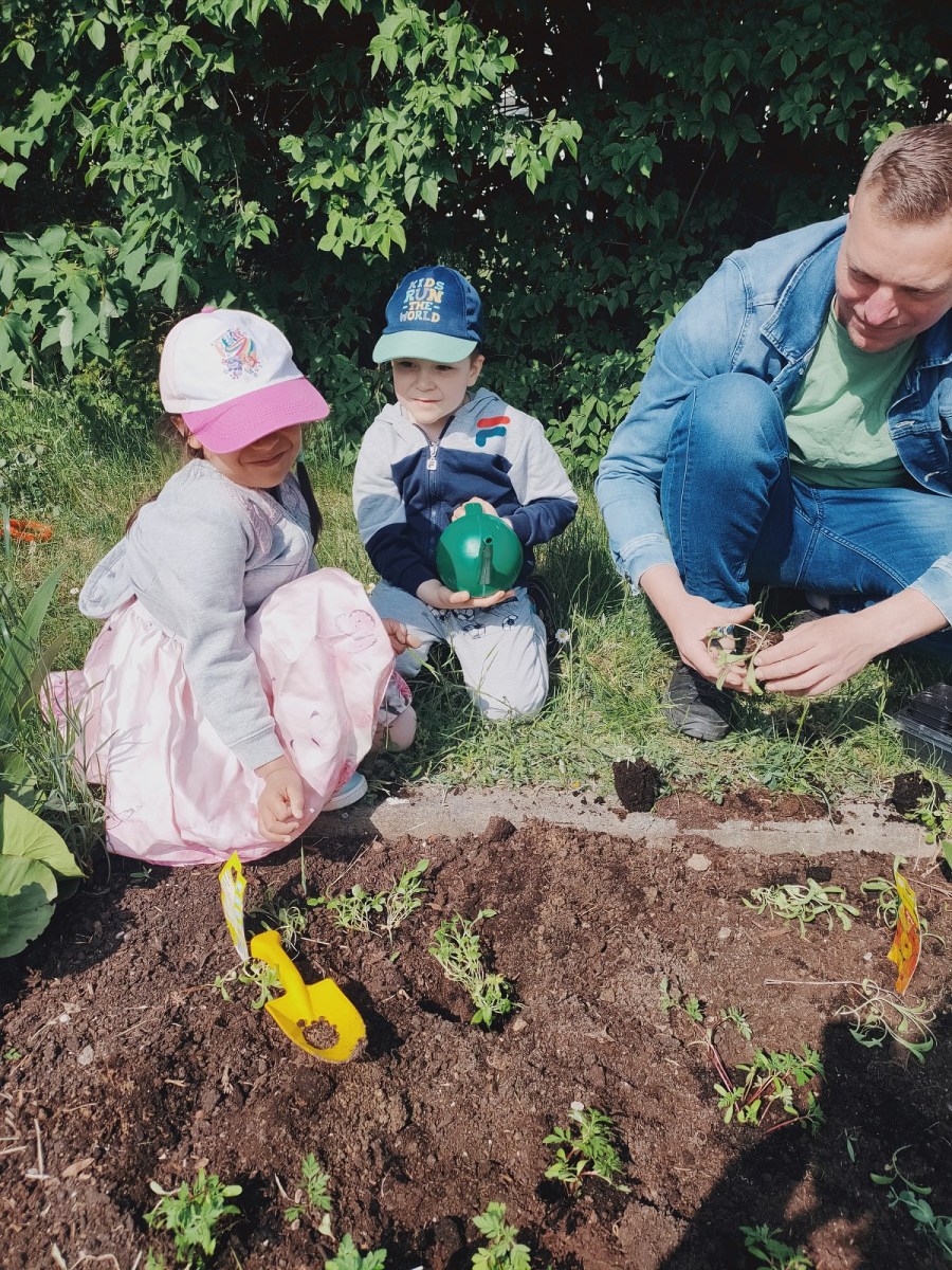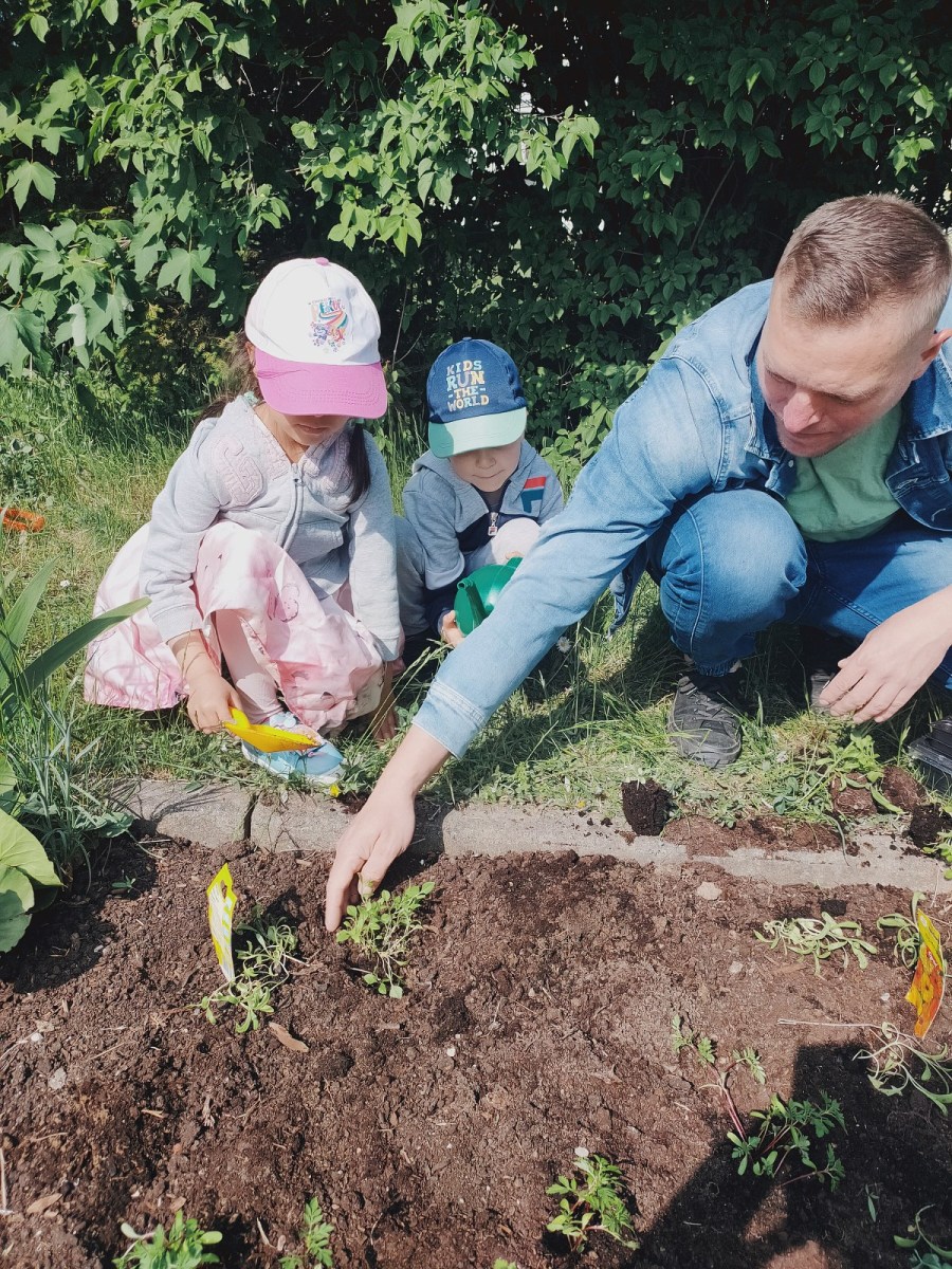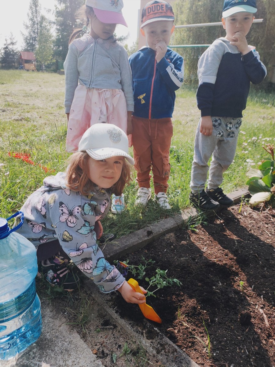 Bawimy się w ogrodników – grupa III Rybki 4 czerwca 2023 Dzieci z grupy Rybki, z pomocą taty Feliksa, sadziły w ogródku przedszkolnym wcześniej wyhodowane rośliny.
