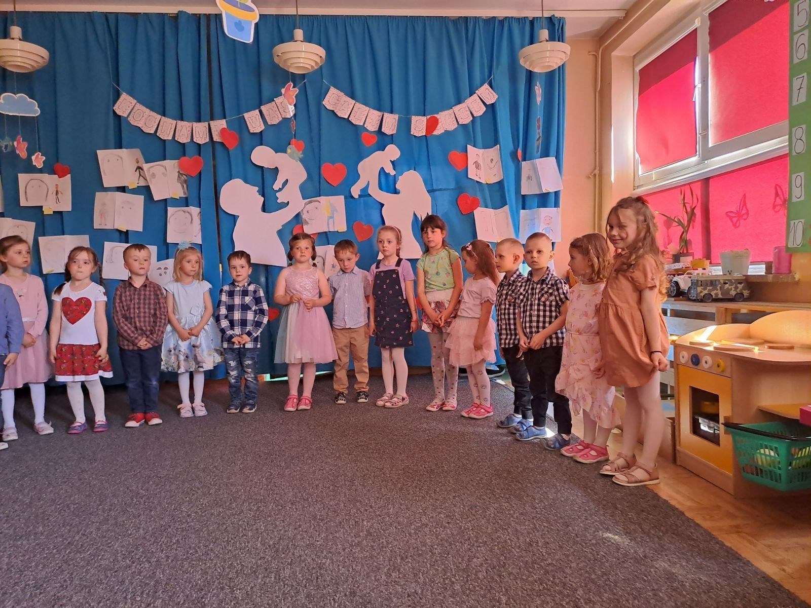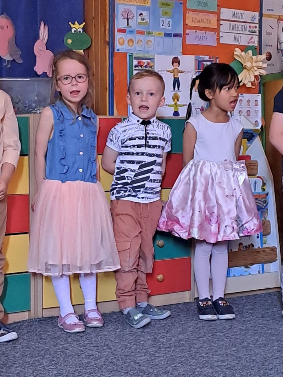 Dzień Rodziny w grupie „Rybek” 6 czerwca 2023 W dniu 30.05.2023r dzieci z grupy „Rybek” zaprosiły rodziców na występ i do wspólnej zabawy, z okazji „Dnia Matki i Ojca”
