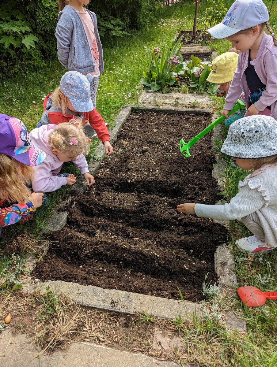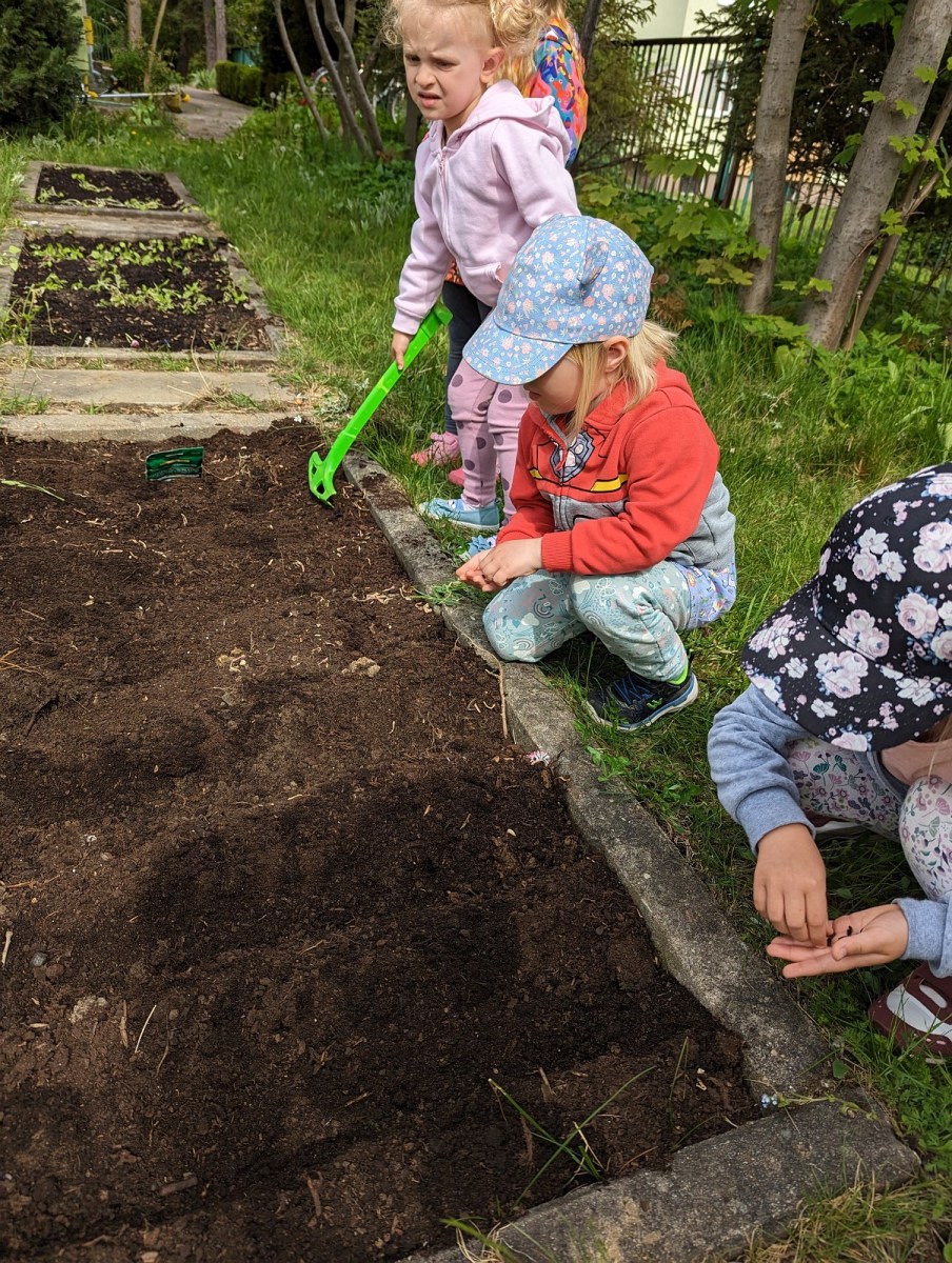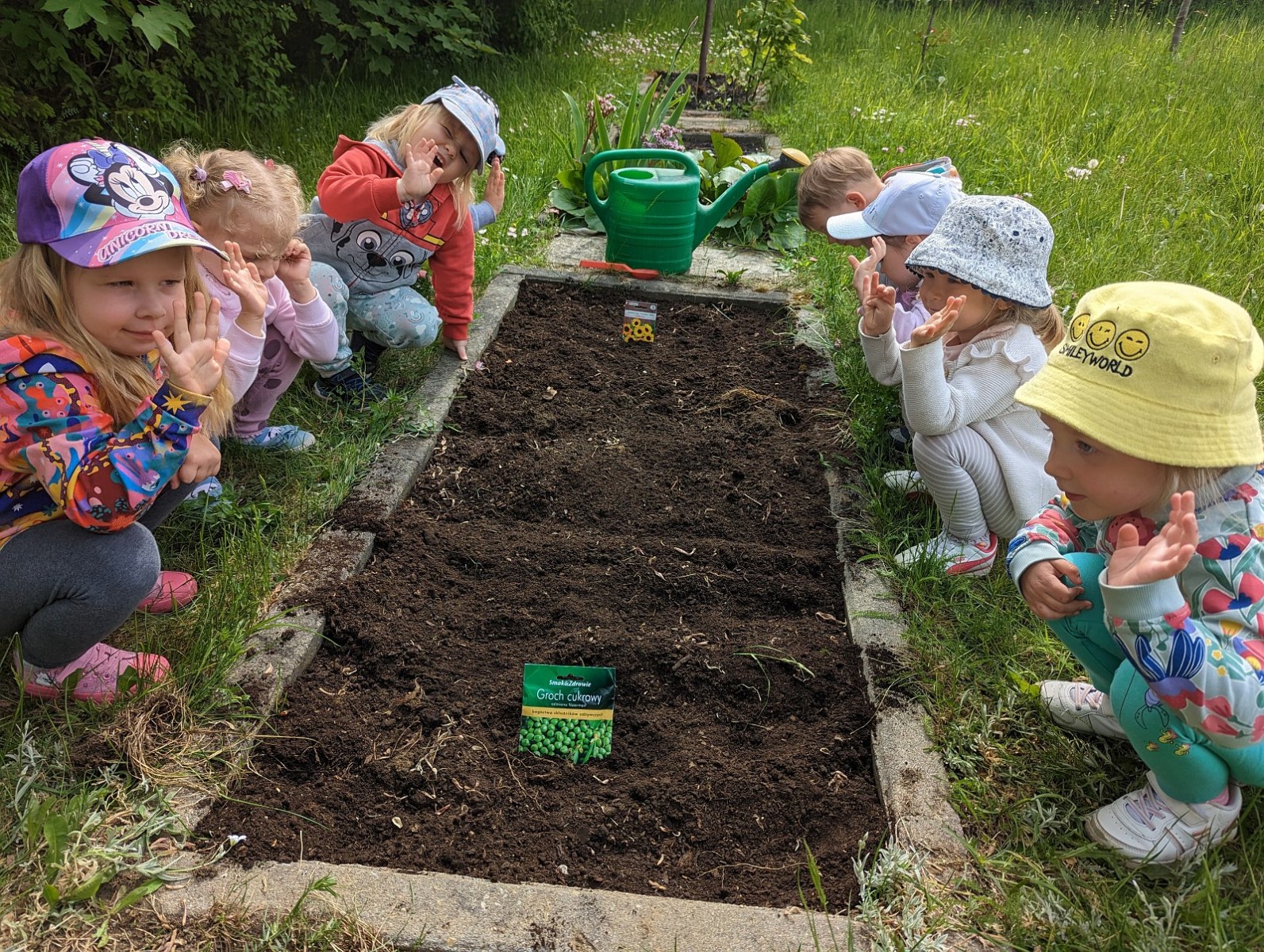 Podczas przeróżnych działań, które mamy okazję każdego dnia doświadczać w Przedszkolu udało nam się również wybrać do naszego przedszkolnego ogrodu. Samodzielnie zasadziliśmy groch i słoneczniki. Każdego dnia dbamy o nasze grządki, podlewamy je i czekamy na wzrost roślin.