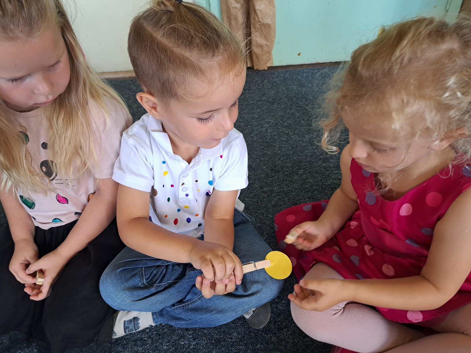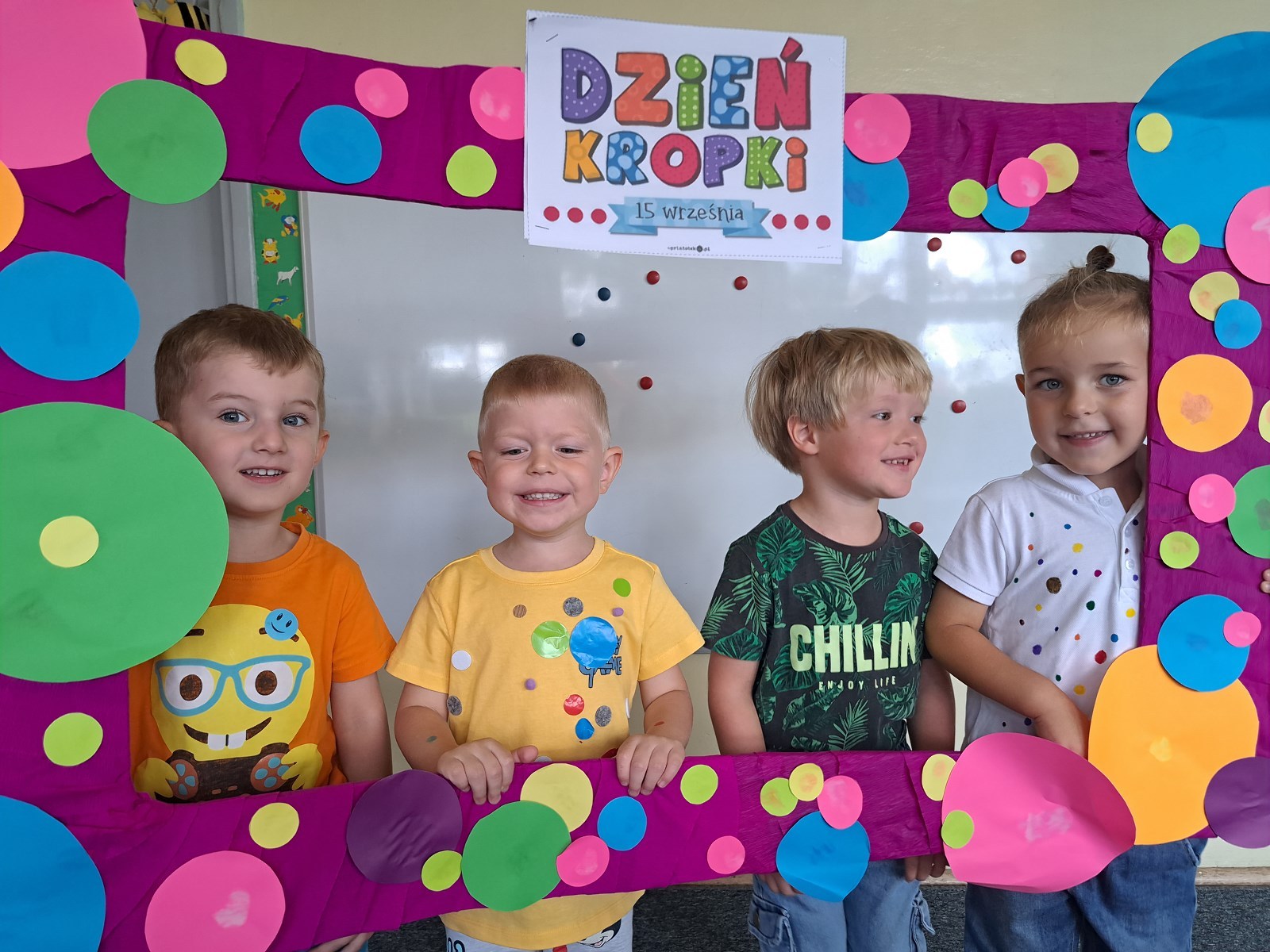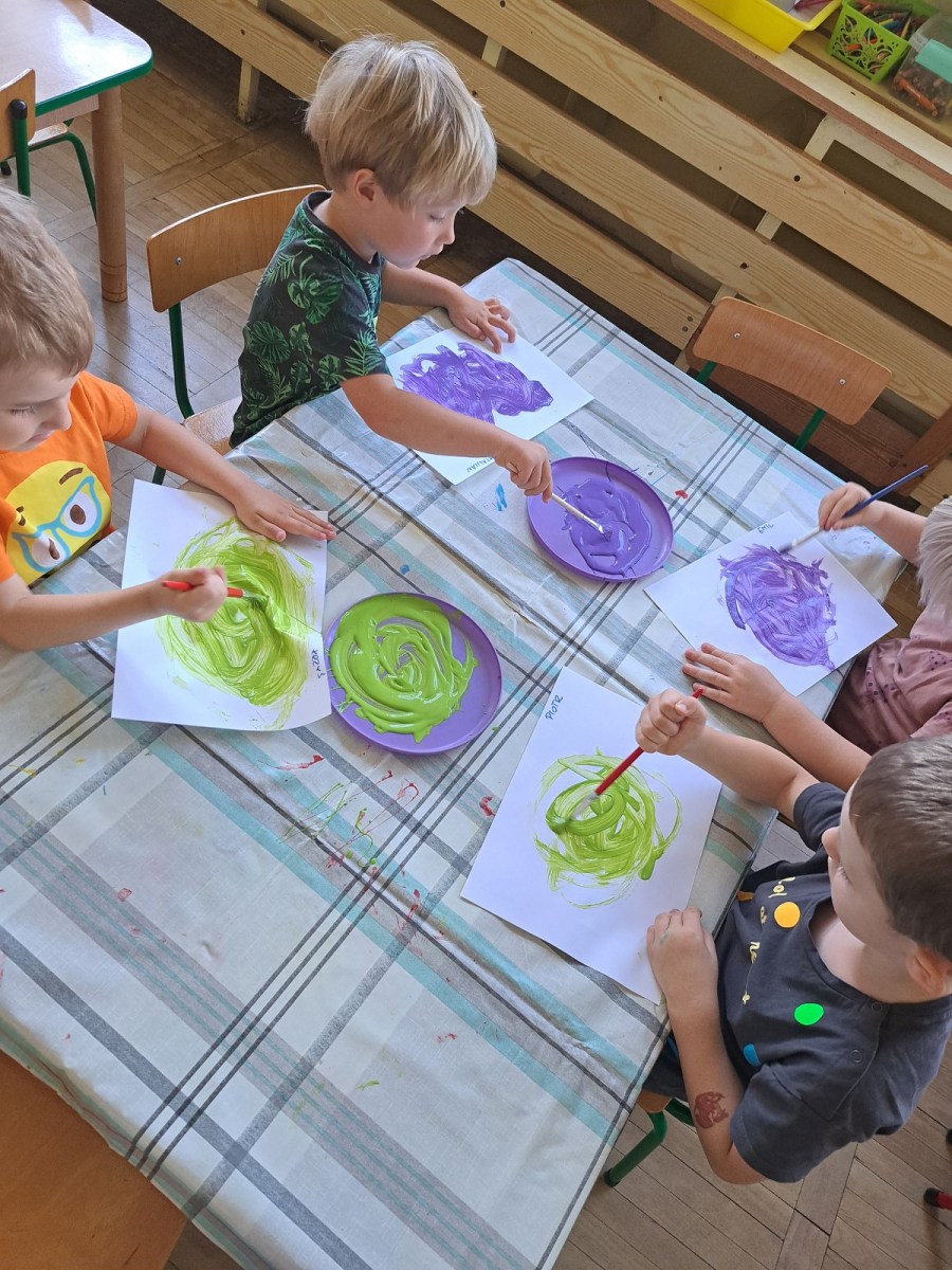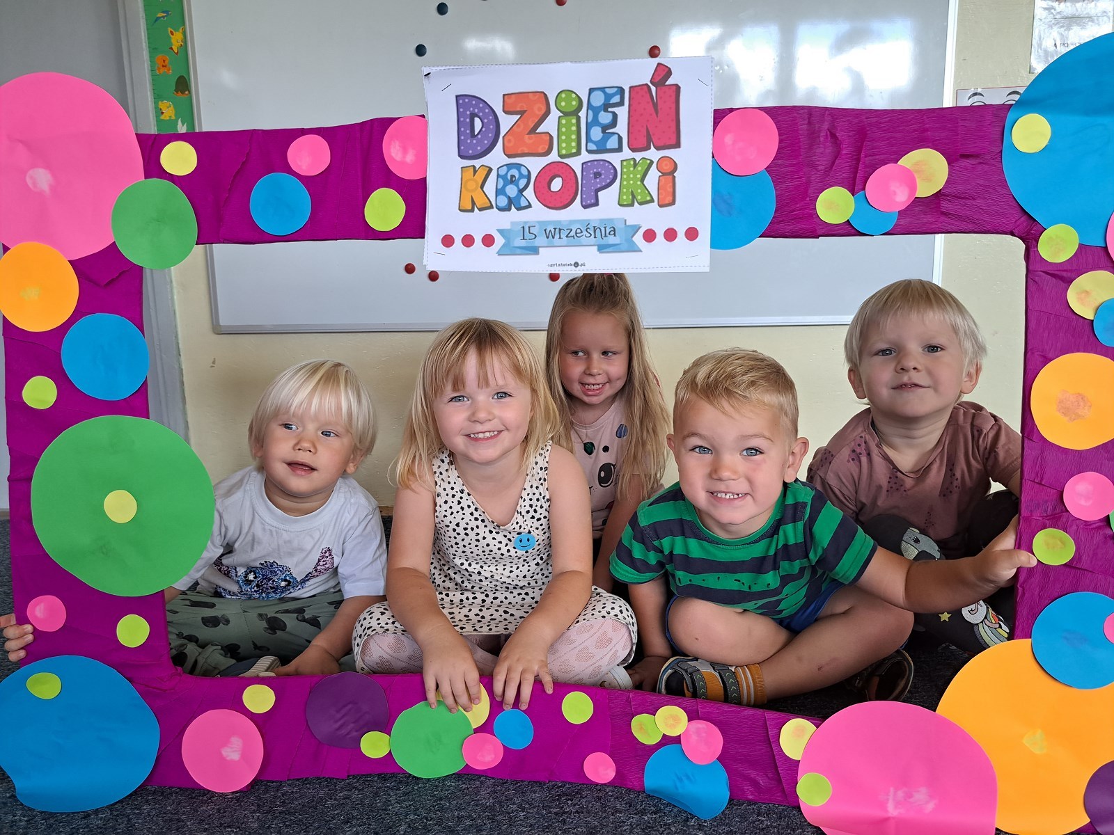 Międzynarodowy Dzień Kropki 24 września 2023 15 września obchodziliśmy z Pszczółkami Dzień Kropki. Dzieci zapoznały się z historyjka o małej Vashti. Ćwiczyły skupienie uwagi oraz motorykę małą podając sobie papierową kropkę klamerką oraz wykonały piękne prace plastyczne.