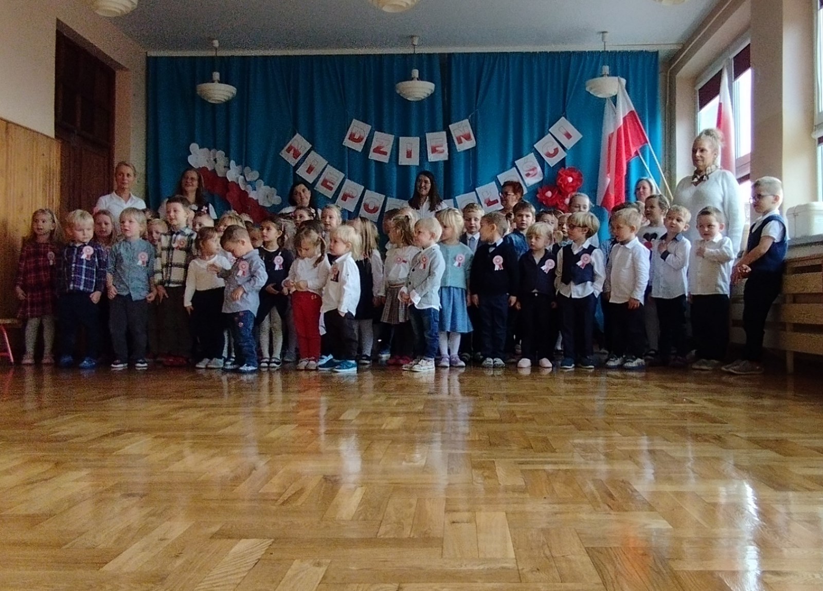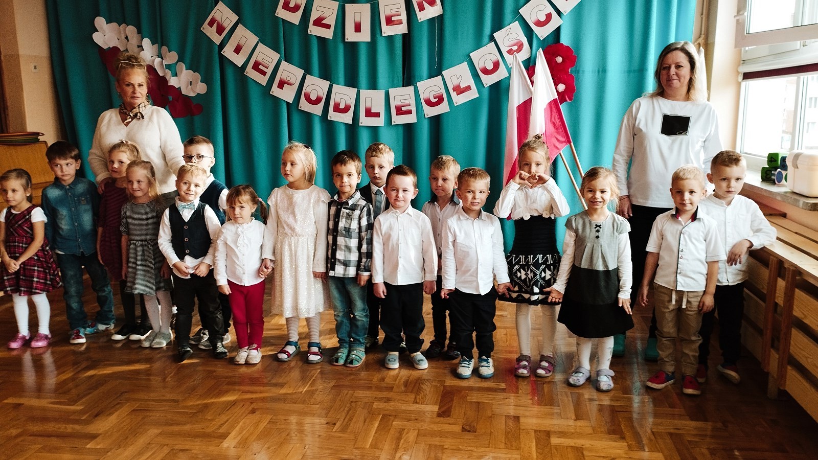 O symbolicznej godzinie 11:11, jak co roku nasze przedszkolaki i pracownicy przedszkola stanęli do wspólnego odśpiewania „Mazurka Dąbrowskiego” w ramach akcji „Szkoła do hymnu”. Odświętnie ubrane dzieci wydeklamowały wiersz „Katechizm polskiego dziecka” Władysława Bełzy zaczynający się od słów: Kto ty jesteś? Polak mały…