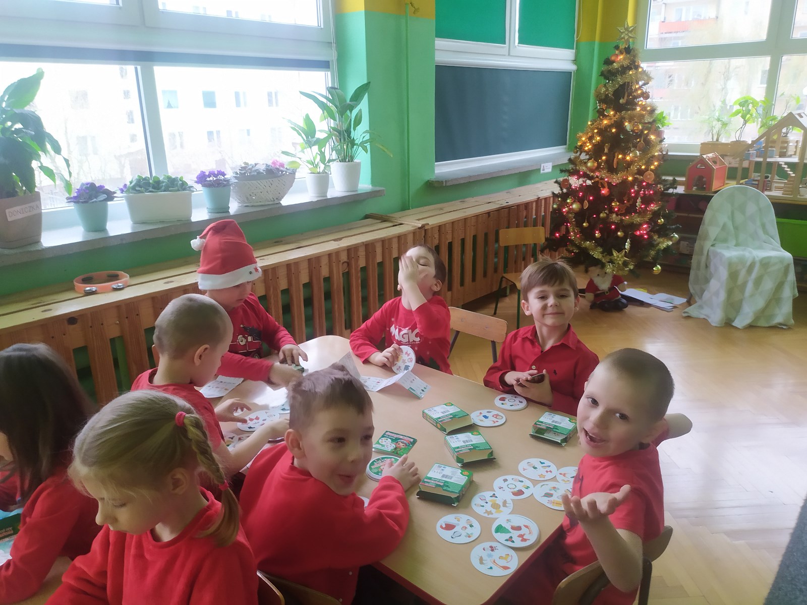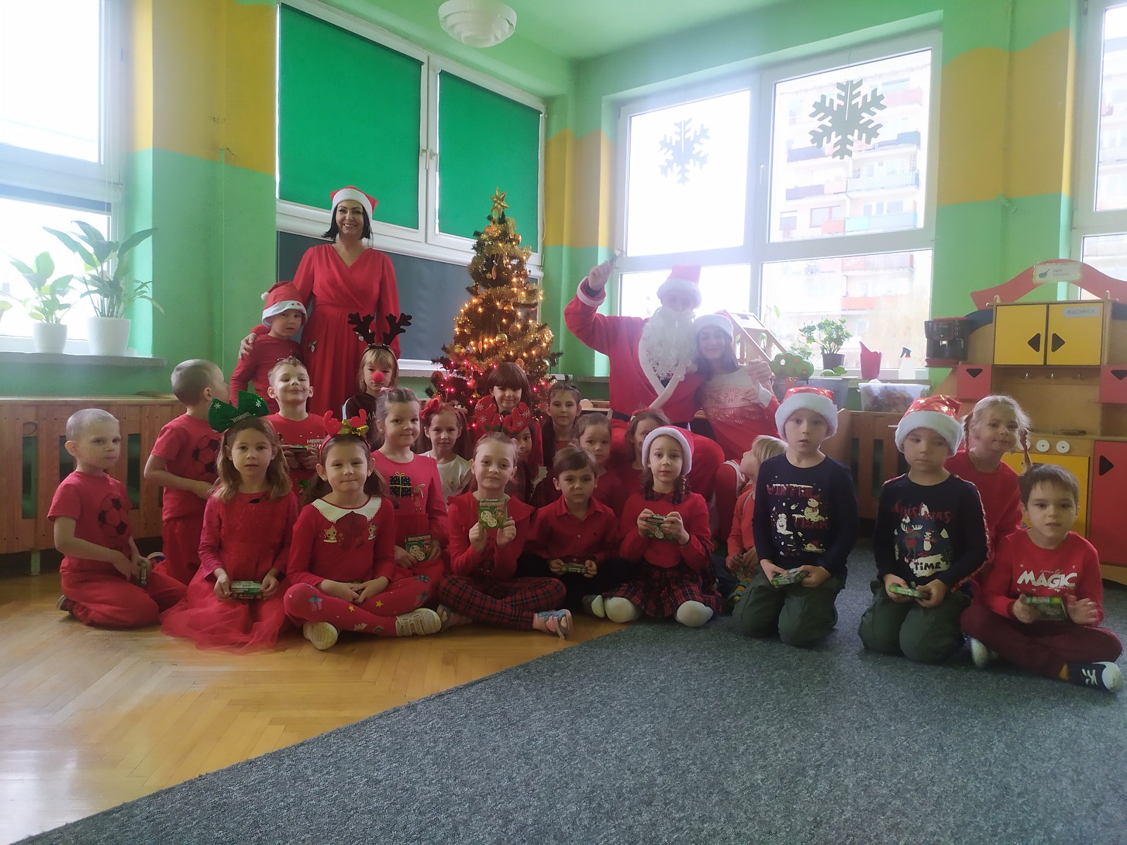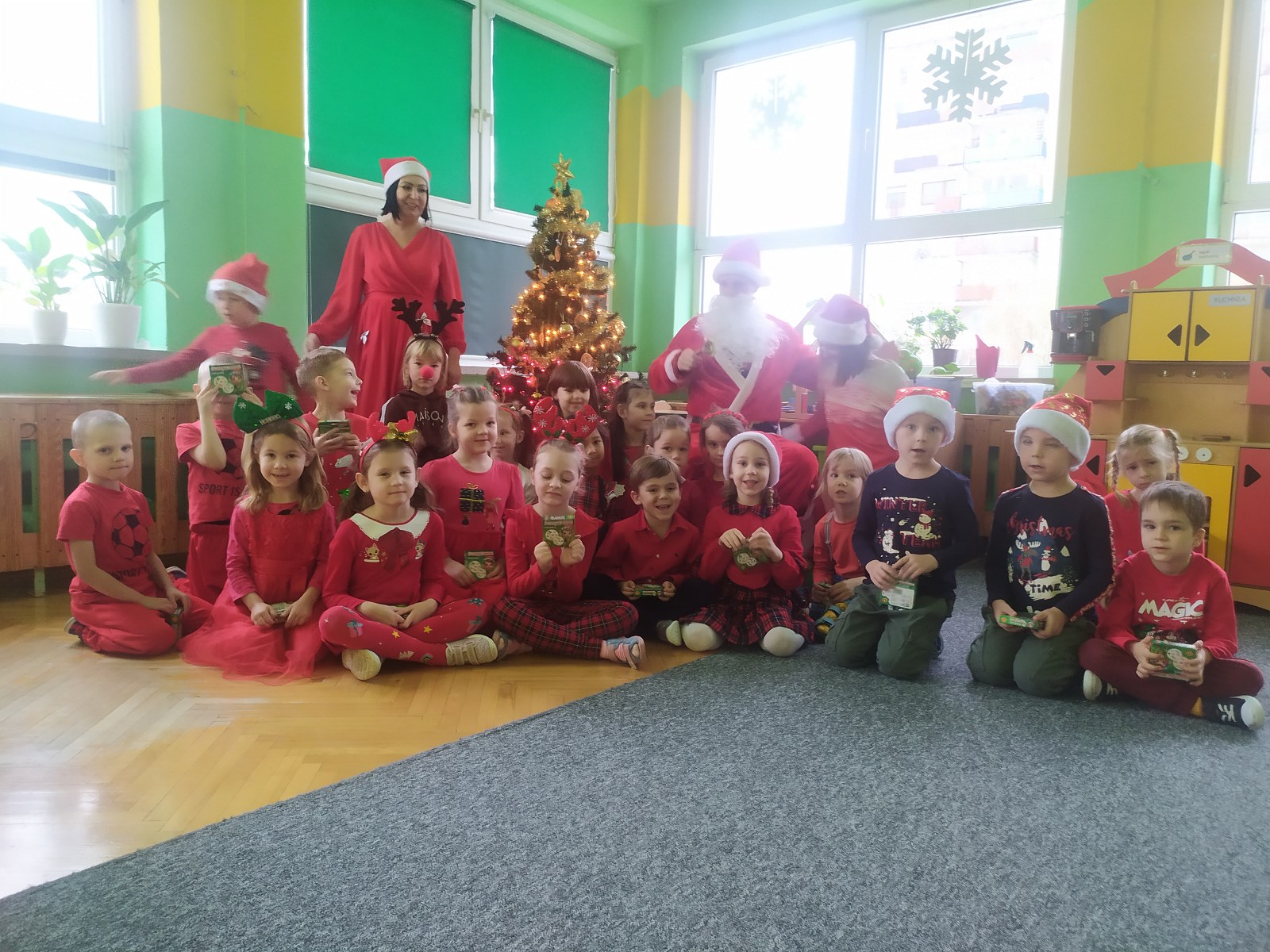 Dzisiaj, 6 grudnia nasze przedszkole odwiedził Święty Mikołaj. Zapewne czerwony kolor naszych ubrań i piękne dekoracje w naszych salach zwabiły go do „RYBEK”. Przyszedł ze swoją asystą śnieżynką elfikiem, reniferem. Porozmawiał z nami, wypytywał czy jesteśmy grzeczni dla siebie, czy układamy zabawki, czy myjemy ząbki ? Zaśpiewaliśmy piosenkę, daliśmy laurkę i pięknie podziękowaliśmy za prezenty które dostaliśmy. Każda buzia była uśmiechnięta.