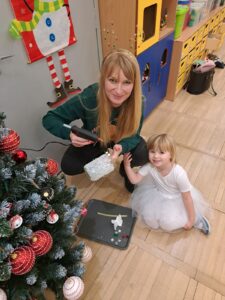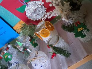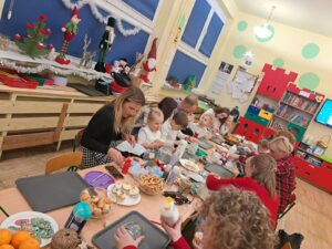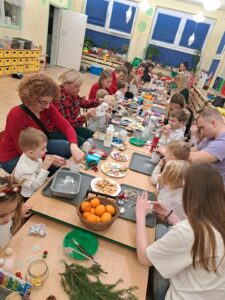 Dnia 19.12.2023r. w grupie „Pszczółek” odbyły się świąteczne warsztaty z udziałem dzieci i ich rodziców. Przedszkolaki przywitały swoich rodziców krótkim świątecznym występem. Następnie wykonały wraz z rodzicami lampion, który na pewno będzie piękna dekoracją na świątecznym stole. Podczas spotkania panowała miła, świąteczna atmosfera. Serdecznie dziękujemy rodzicom za obecność oraz aktywne włączenie się w przygotowanie świątecznych warsztatów.