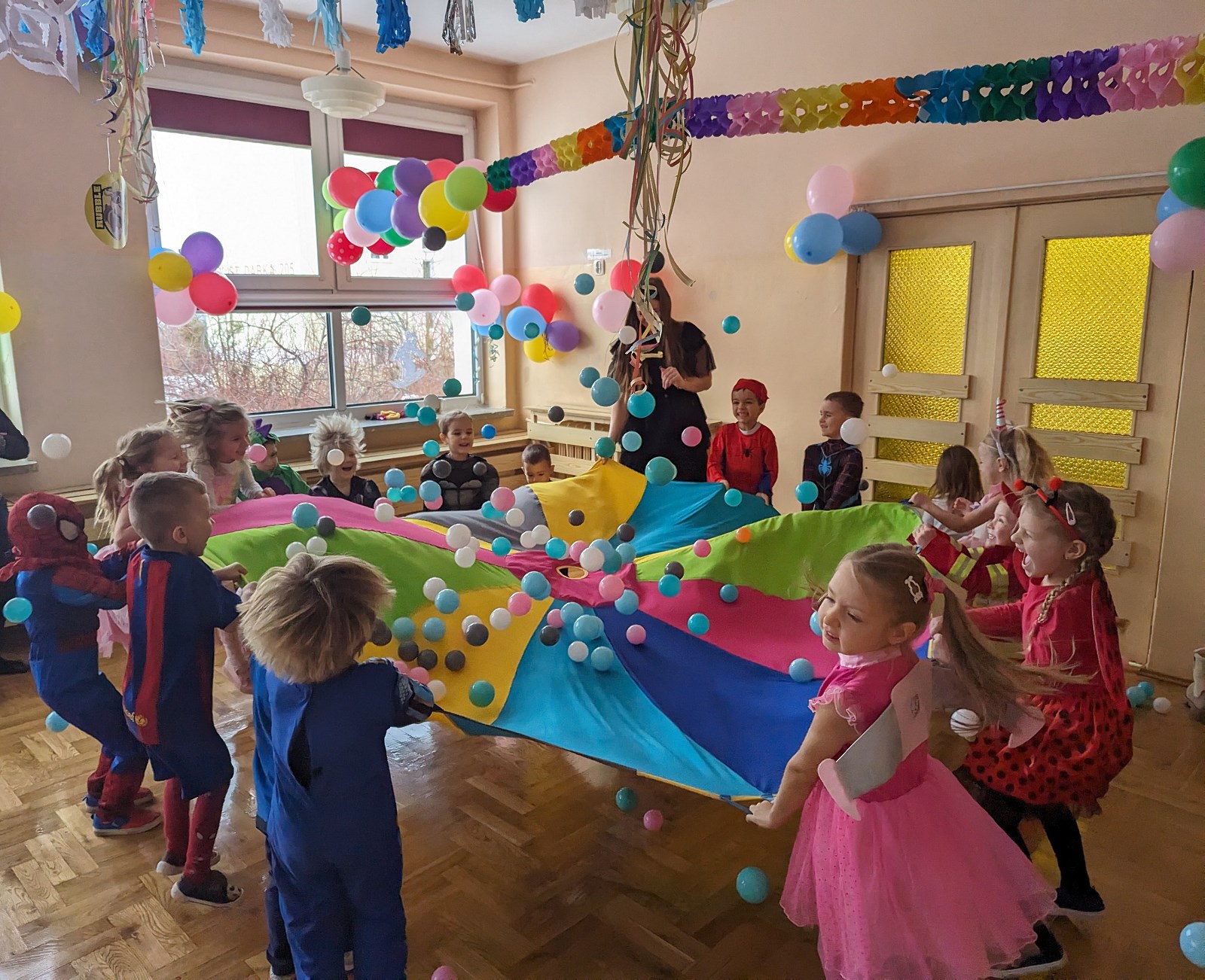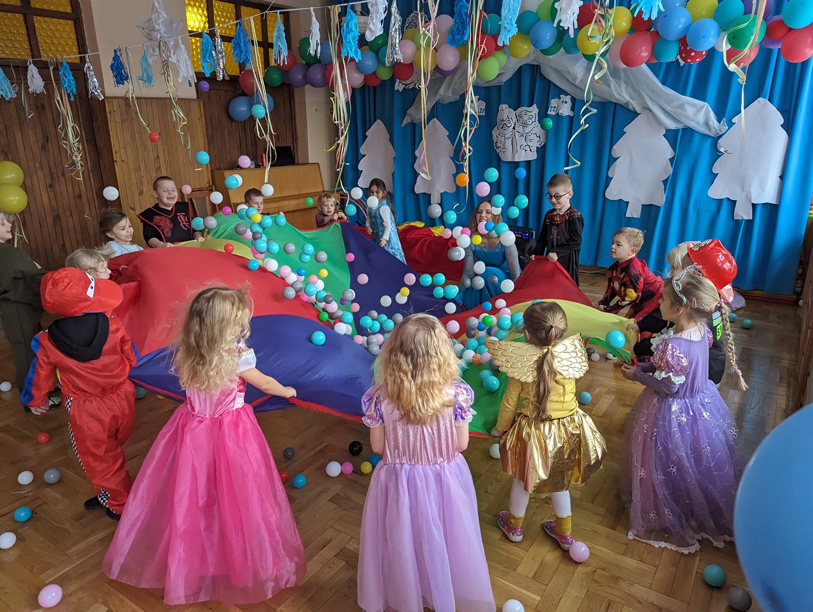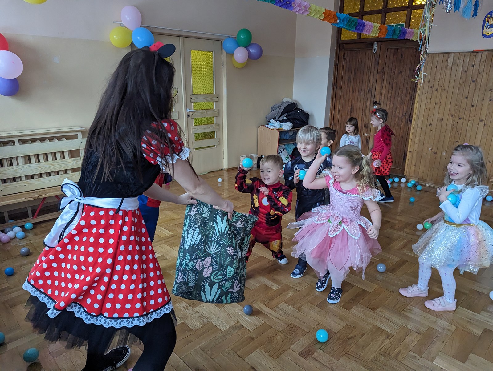 Nasze przedszkolaki z grupy I i II dnia 17.01.2024 r. wspólnie bawiły się na balu karnawałowy, który był prowadzony przez grupę EkoArt. Zabawa była świetna! Były tańce, konkursy i przede wszystkim dobra zabawa. Dzieci prezentowały się fantastycznie w rozmaitych przebraniach i kostiumach. Tego dnia w przedszkolu królował szeroki uśmiech na twarzy każdego dziecka.