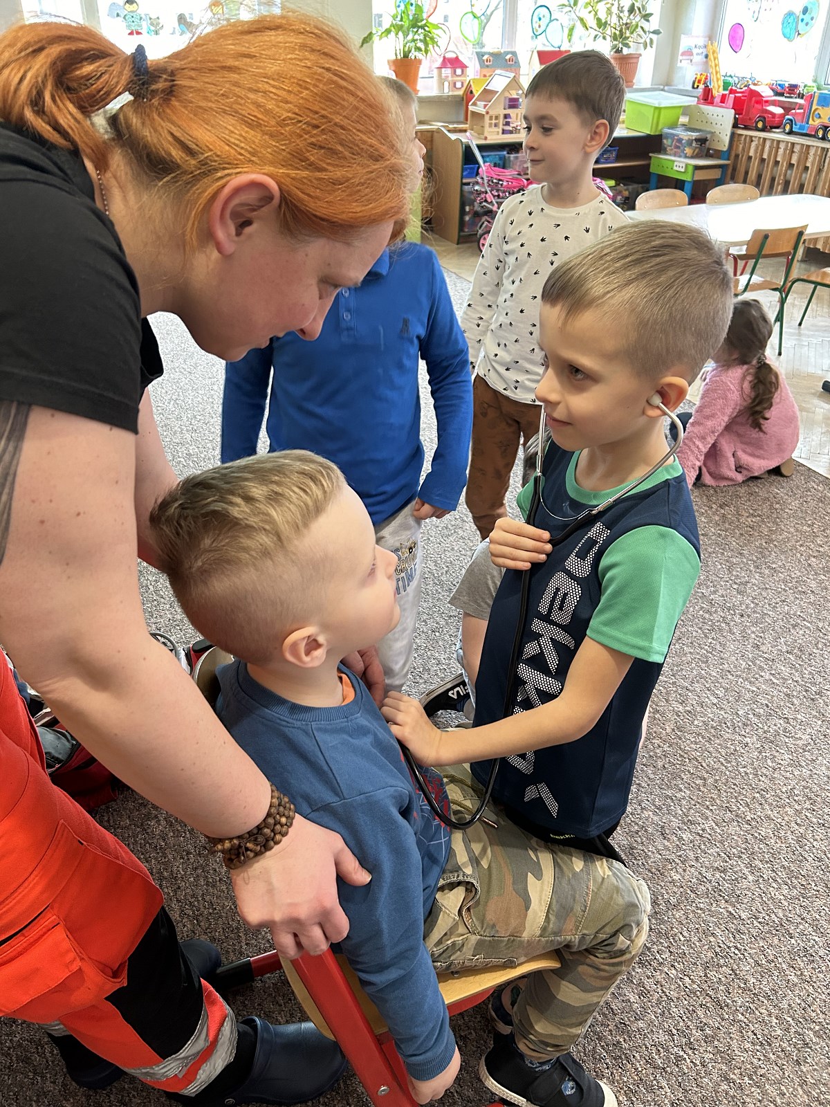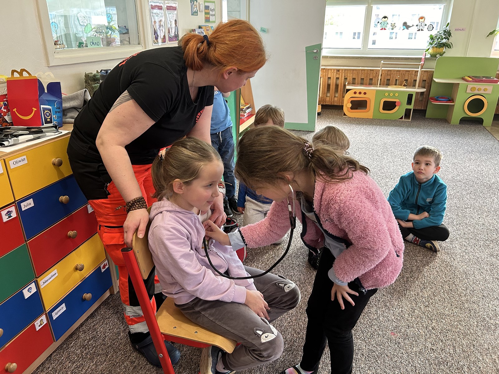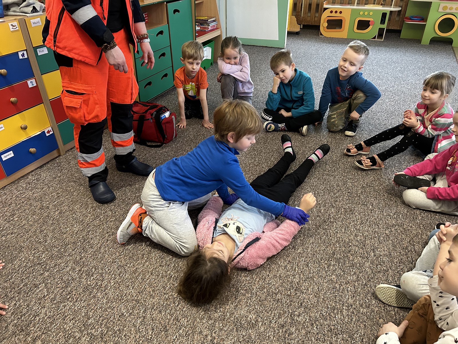 Dzisiaj (25 stycznia) dzieci z grupy „Koty” miały okazję poznać pracę ratownika medycznego. Podczas spotkania uczyły się jak udzielać pierwszej pomocy oraz jak zareagować i kogo powiadomić w przypadku nieszczęśliwego wypadku. Nasza grupa spisała się na medal!