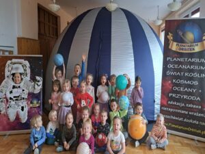 Mobilne planetarium Orbitek przeniosła dziś nasze „Pszczółki i Sówki” W fascynujący świat kosmosu. Podczas seansu dzieci mogły zobaczyć jak Ziemia wygląda z kosmosu oraz zobaczyć krążący wokół naszej planety. Na zakończenie dzieci mogły zobaczyć piękne kolorowe gwiazdozbiory. To była wspaniałą i niezapomniana przygoda, która zachwyciła dzieci i pozwoliła im na odkrycie fascynującego świata Kosmosu.