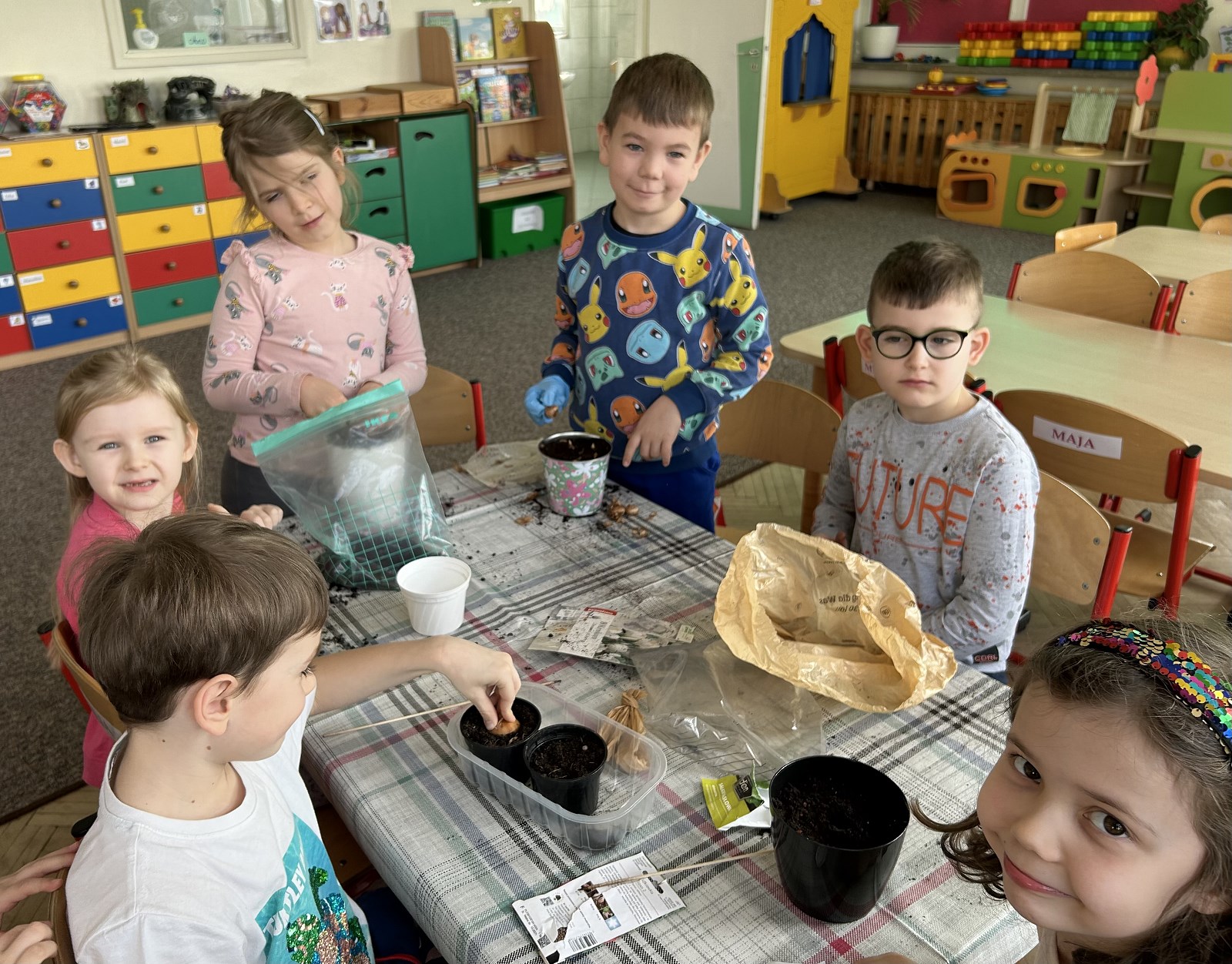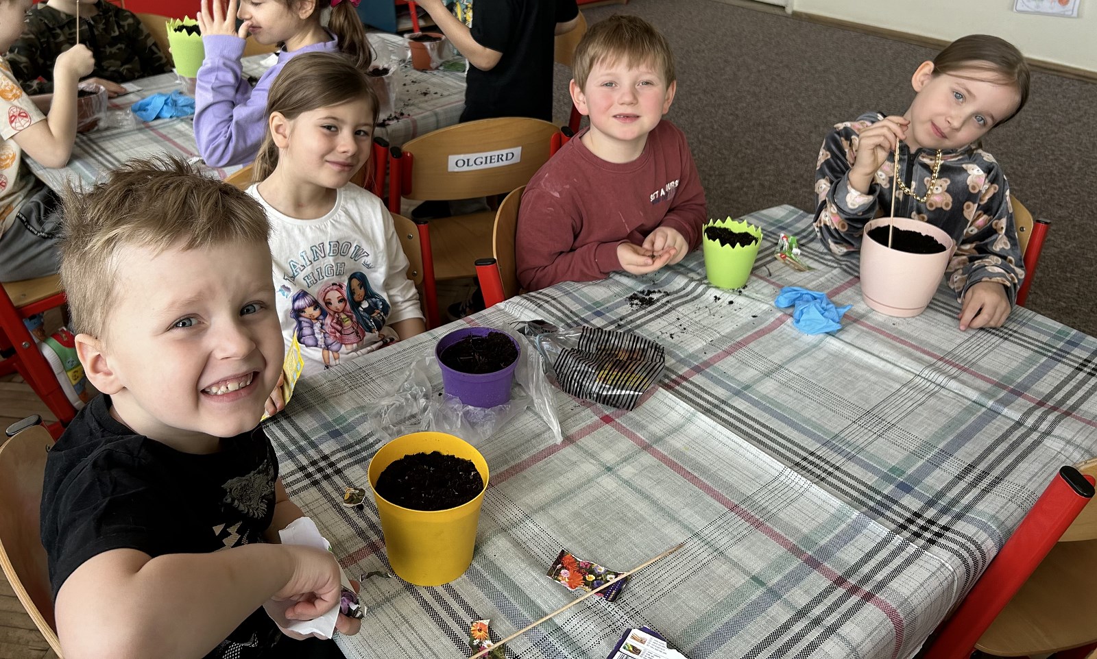 Wiosenny ogródek u „Kotów” 17 marca 2024 Dzisiaj (14 marca) grupa „Koty” sadziła wiosenne kwiaty i nowalijki. W doniczkach znalazły się nasiona bratków, krokusów, maciejki oraz rzodkiewki, koperku i sałaty. Czekamy teraz na pierwsze rośliny w naszym wiosennym ogródku.