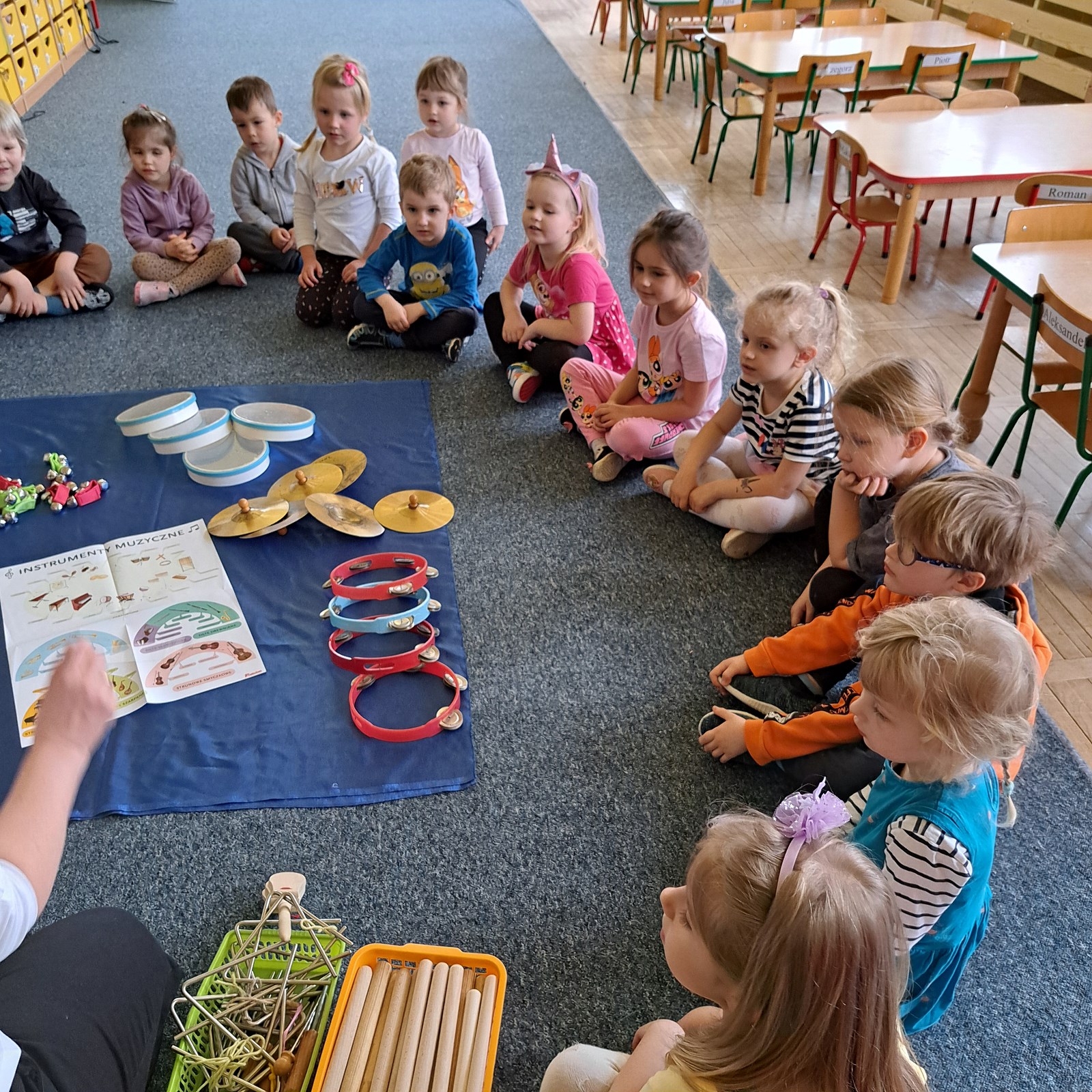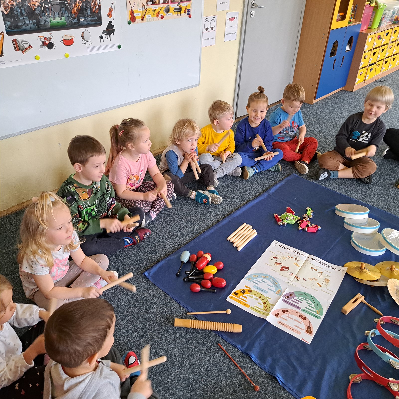 Pszczółki w tym tygodniu poznawały instrumenty muzyczne. Wszystkie dzieci były zainteresowane zajęciami i chętnie w nich uczestniczyły. Najpierw poznawaliśmy nazwy instrumentów, rozwiązywaliśmy zagadki tematyczne, a na koniec dzieci wybierały swój ulubiony instrument i próbowały na nim grać. W naszej sali było bardzo głośno ale również kreatywnie i wesoło.