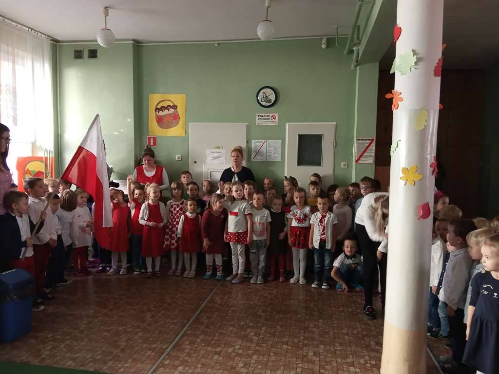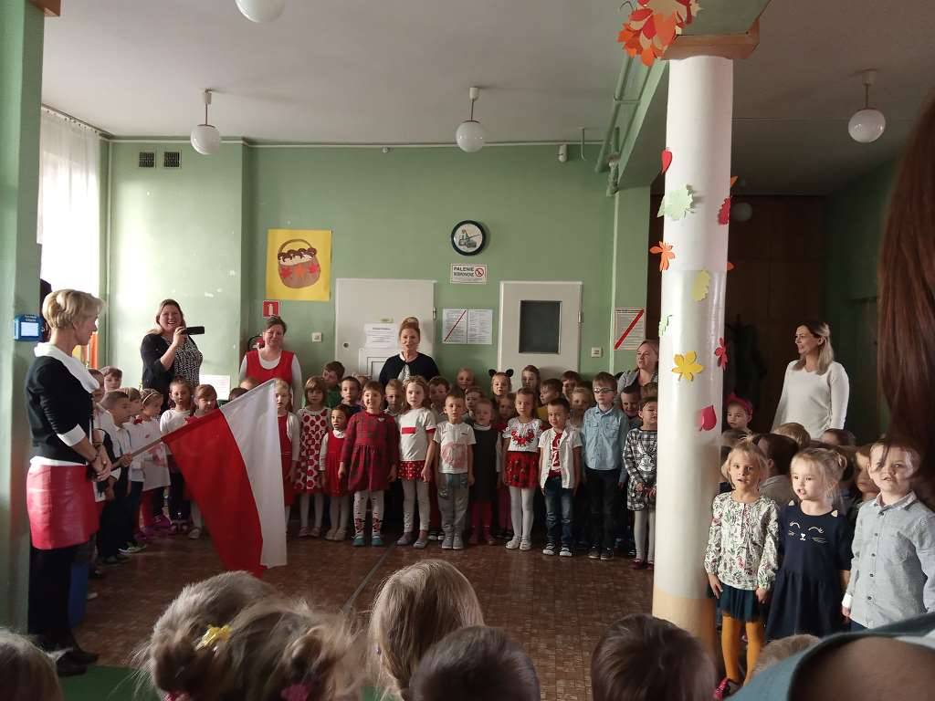 8 listopada punktualnie o godzinie 11.11 wszystkie dzieci i pracownicy naszego przedszkola odśpiewali „Mazurka Dąbrowskiego” aby uczcić rocznicę odzyskania niepodległości przez państwo polskie. Akcja „Szkoła do hymnu” to przedsięwzięcie, które jest kontynuacją ubiegłorocznej inicjatywy „Rekord dla Niepodległej”.