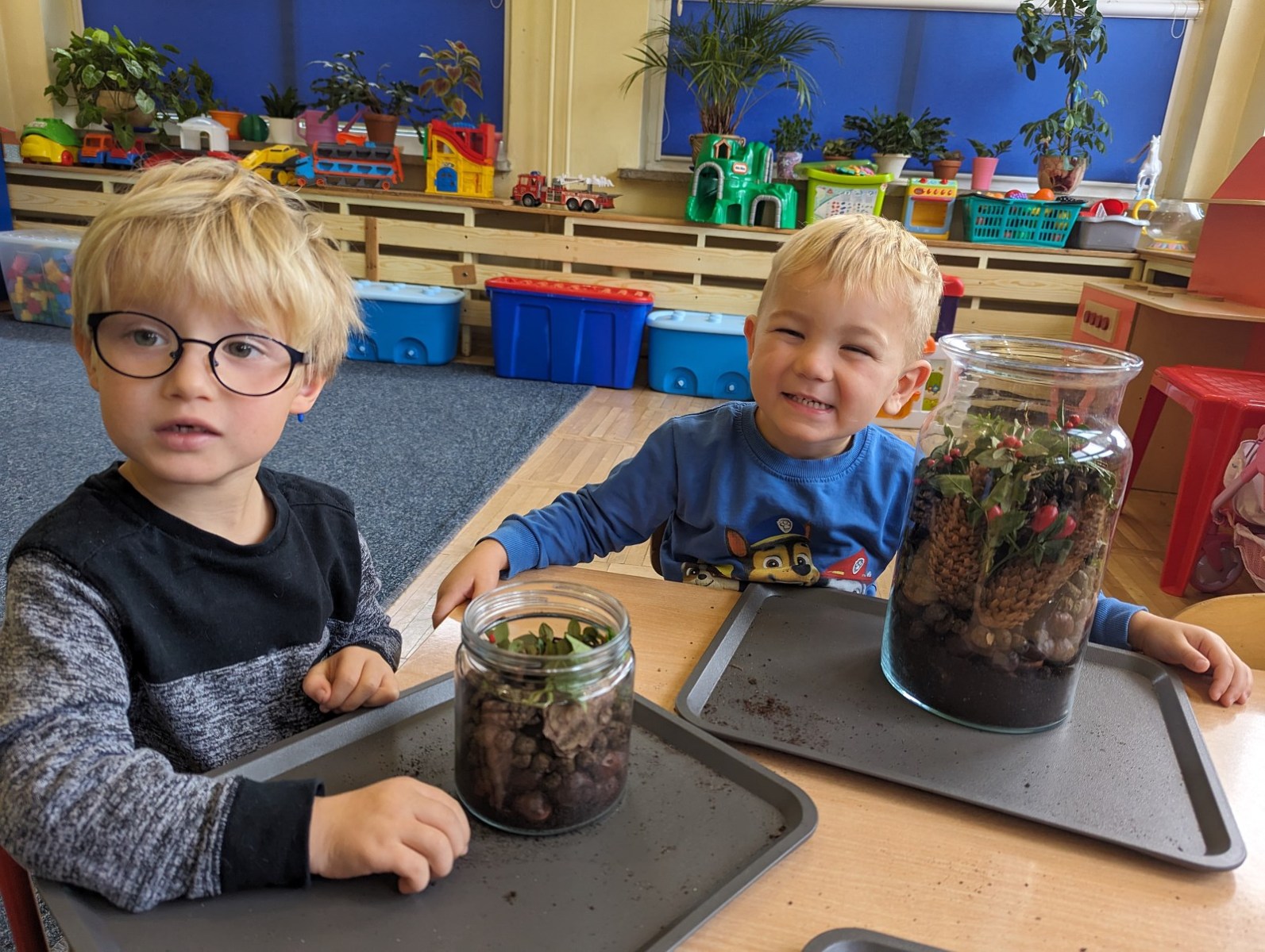 Grupa I „Pszczółki” dnia 11.10.2023 r. z zapoznanych darów jesieni samodzielnie wykonały „Las w słoiku”. Praca ta wymagała skupienia, ale wywołała również radość na twarzach dzieci. Na efekty nie trzeba było długo czekać. „Las w słoiku” to nie tylko walory wzrokowe, ale również i zapachowe o czym mogli się przekonać zarówno dzieci, jak i ich rodzice.